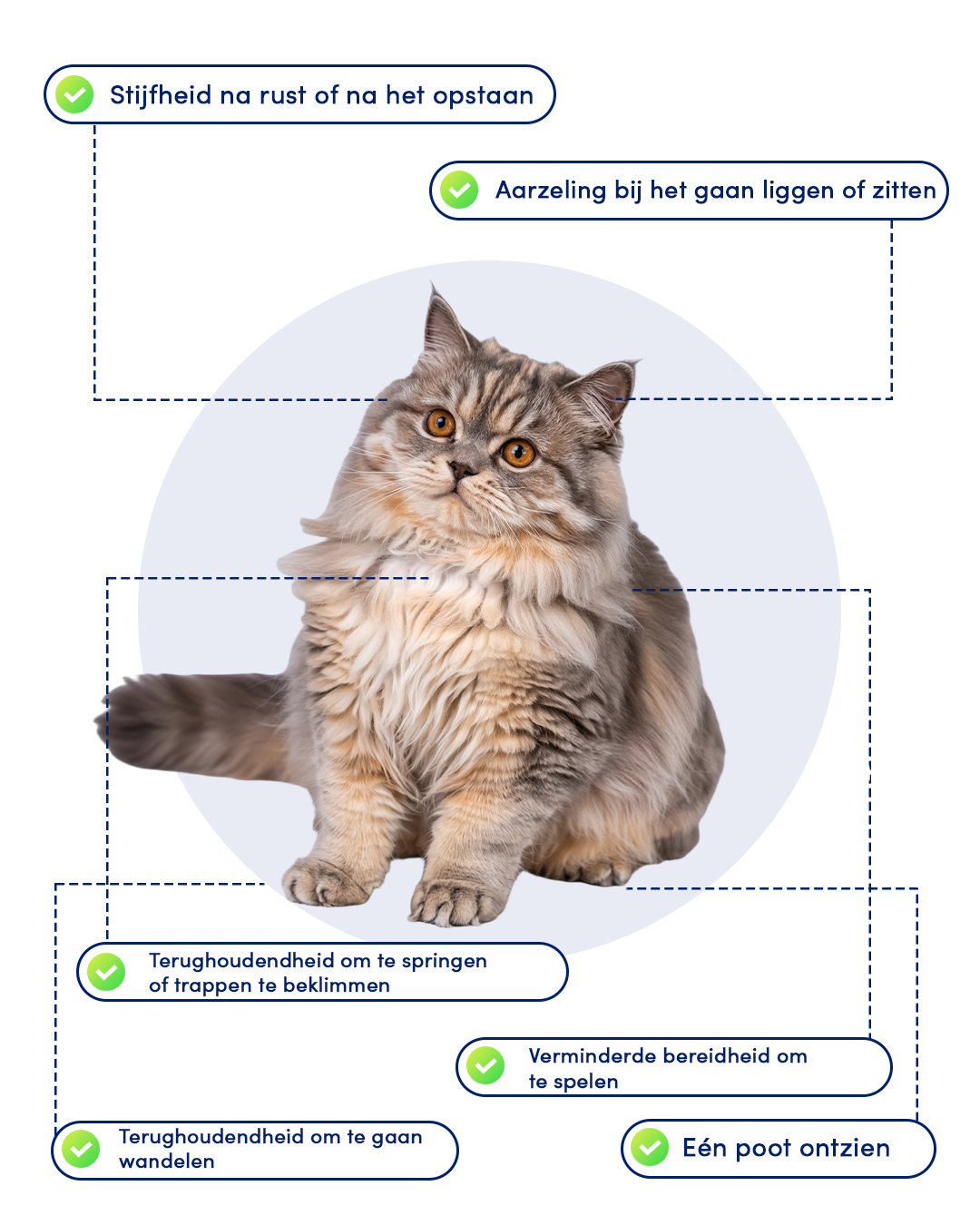Naarmate katten ouder worden of extra actief zijn, kunnen de gewrichten gevoeliger worden voor slijtage en stijfheid. Merk je dat je kat minder makkelijk springt, voorzichtig beweegt of soms wat langer blijft liggen? Dit kunnen subtiele signalen zijn van beginnende gewrichtsproblemen. Op tijd letten op deze veranderingen is belangrijk, want zo voorkom je pijn, bewegingsbeperking en blijvende klachten.