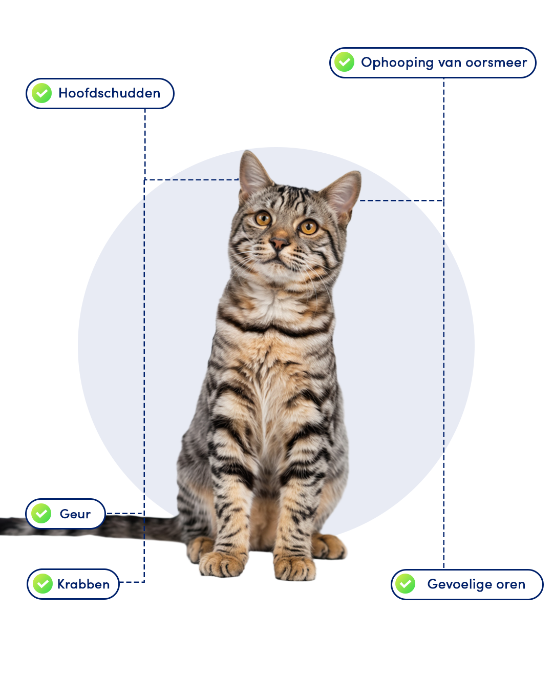 Toch zijn kattenoren gevoelig. Oorsmeer bij de kat kan zich ophopen, vooral bij katten die graag buiten zijn of ouder worden. Een beetje oorsmeer is normaal, maar te veel kan leiden tot ongemak of zelfs een oorontsteking bij de kat. Signalen zoals veelvuldig krabben aan het oor, schudden met de kop, roodheid, nare geur of donker oorsmeer zijn tekenen dat de oren extra aandacht verdienen.